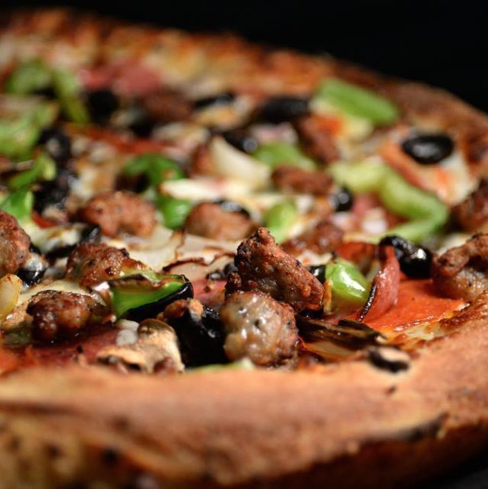 Pepperoni, Italian sausage, mushrooms, green peppers & black olives.